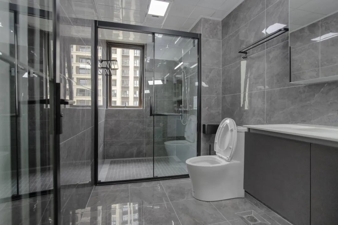 馬桶和洗手臺(tái)盆并排設(shè)計(jì)在一起,結(jié)合著化妝臺(tái)的功能,浴后護(hù)膚都能在這里進(jìn)行。
